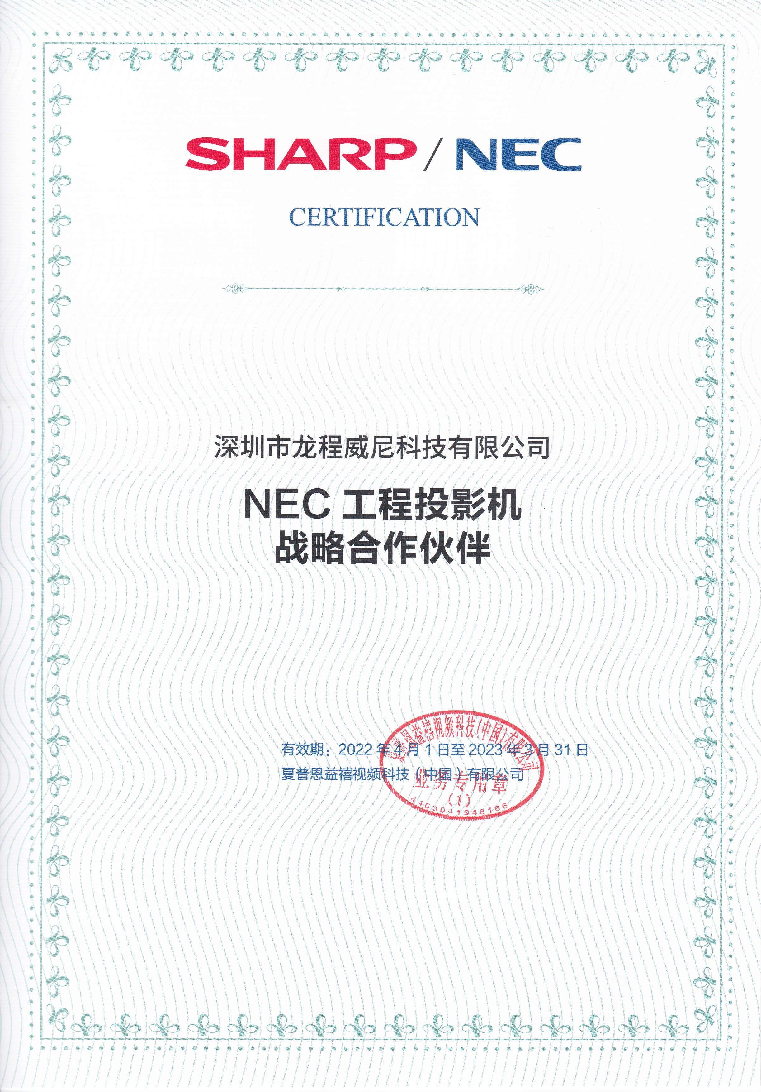 公司成為日本NEC工程投影機(jī)戰(zhàn)略合作伙伴