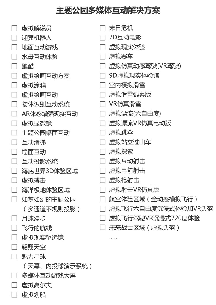 在大型主題公園環(huán)境下,以高清投影或LED電視墻等硬件展示大場(chǎng)景平面視覺效果的多媒體載體。包括:影像走廊、天幕、地幕等。給參觀者一種地娛樂體驗(yàn)。