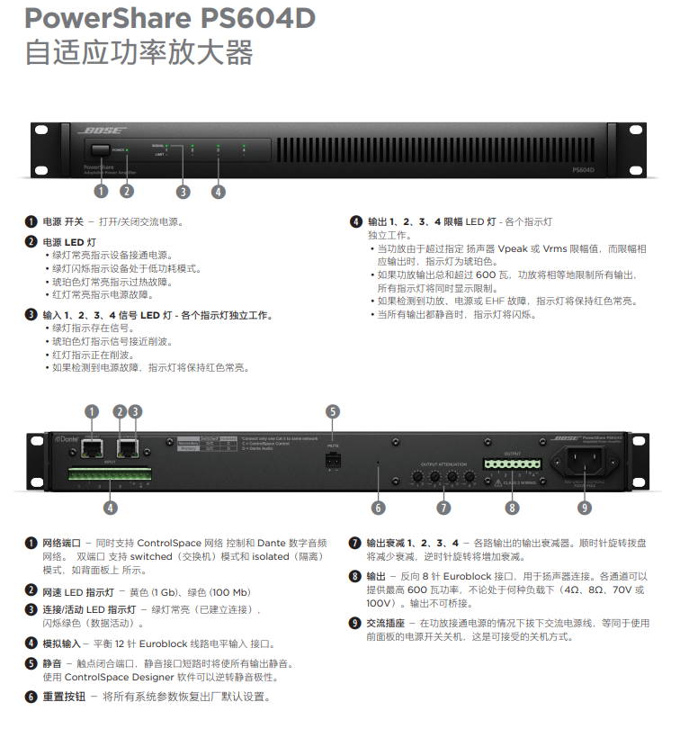 BOSE PowerShare PS604D 自適應(yīng)功放產(chǎn)品參數(shù)